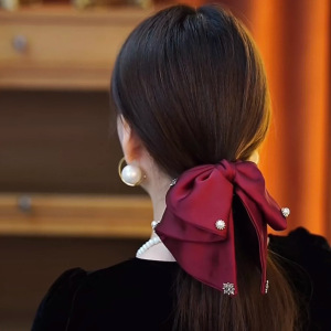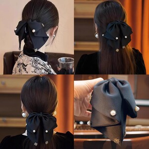 2025新款路易斯星语缎面鲨鱼夹气质蝴蝶结盘发头饰后脑勺发夹