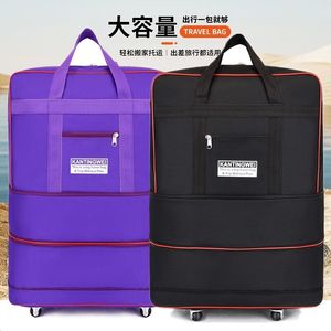防水バックパッカブルオックスフォード布スーツケース大容量旅行バッグ折りたたみチェックバッグ海外引っ越し荷物バッグ伸縮式