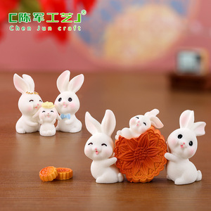 微景观可爱中秋节小兔子月饼 园艺diy装饰配件桌面车载树脂小摆件