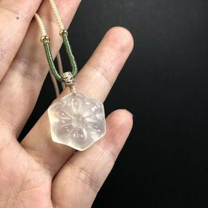 白玉髄ハイクオリティフラワーペンダント 紐付き