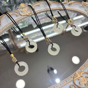 白玉髄(しらぎょくずい)の新型平安扣(へいあんこう)ペンダント 紐付き