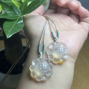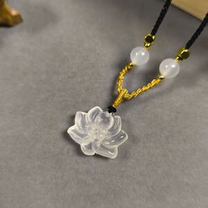 白玉髄ハイアイス蓮の花チャーム ペンダント (紐付き)