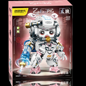 创玩时代十二生肖炫酷机甲玩具积木颗粒拼装模型国风属相潮玩摆件