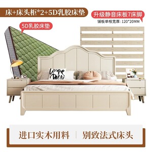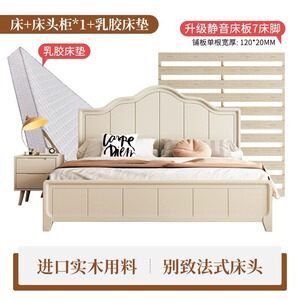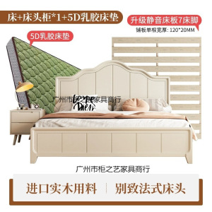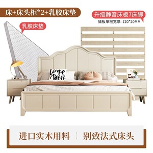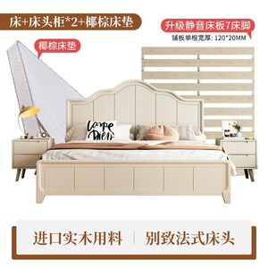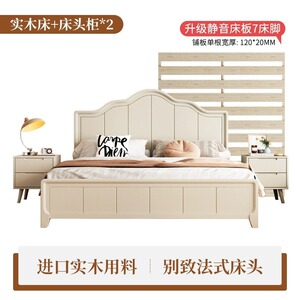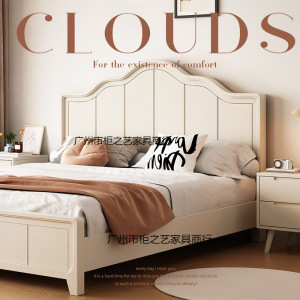 北欧白無垢材ベッドクリームスタイル収納モダンシンプルなウェディングベッドダブルベッドマスターベッドルームプリンセスライト高級ベッド
