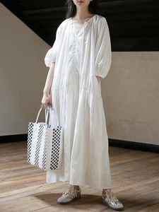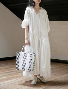 1313白月光小白裙~浪漫法式度假风系带长裙女夏季宽松连衣裙