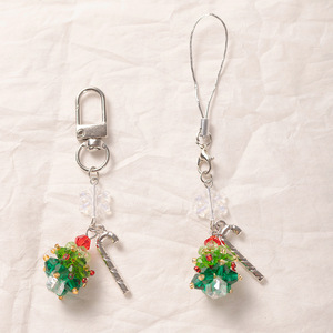 圣诞树手机挂饰挂绳串珠diy相机防丢绳钥匙扣挂件包包挂件手机链