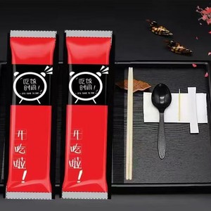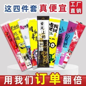 一次性筷子四件套外卖拌饭打包圆筷双生筷加硬勺子纸巾牙签四合一