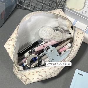 インスタイルインターネットセレブぬいぐるみ新鮮でかわいい小さな花柄鉛筆バッグ大容量収納袋旅行化粧品袋