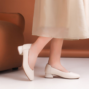 25秋マザーズシューズ本革快適ミッドヒールソフトソール中年シングルシューズスクエアトゥ小さな革靴作業靴女性の四季靴