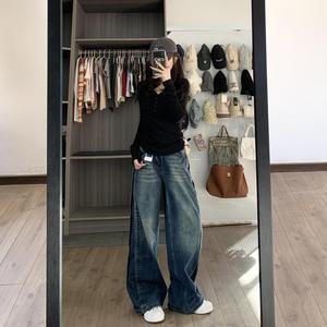 【广州新塘牛仔】美式复古阔腿牛仔裤女高腰显瘦宽松垂感直筒长裤