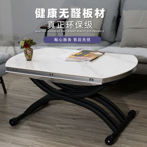 小户型茶几餐桌二合一两用升降岩板多功能客厅饭桌家用折叠玻璃圆