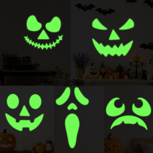 ハロウィン邪悪な表現グリーン発光ステッカーフェスティバルサプライズゴーストフェイス壁装飾 PVC 発光ステッカー