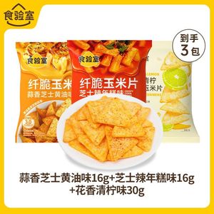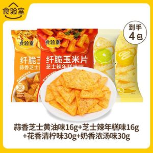 食验室纤脆玉米片薯片非油炸解馋小零食香菜牛肉芝士辣年糕烧烤味