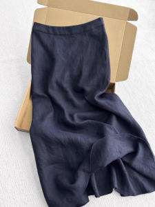 おすすめです!オールドマネースタイルネイビーブルーリネンスカート女性の夏軽くて通気性のあるハイウエストAラインフィッシュテールスカート