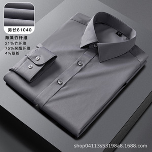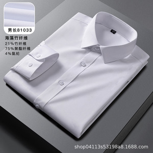 作業服品質シャツ長袖男女海藻シャツ竹炭ビジネス作業服刺繍lo竹繊維白シャツ