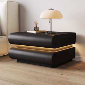 卧室家用网红奶油白色带灯床头柜意式皮质黑色实木床边收纳储物柜