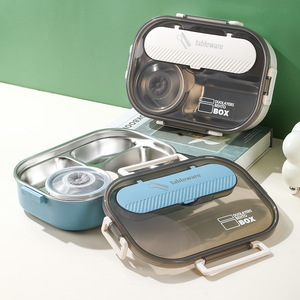 304 ステンレス鋼弁当箱密封されたコンパートメント鮮度保持弁当箱子供、学生、オフィスワーカーのためのポータブル断熱弁当箱