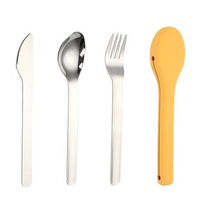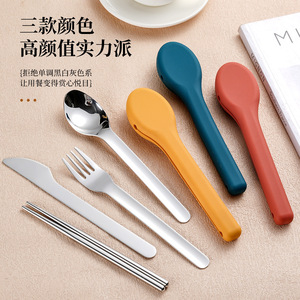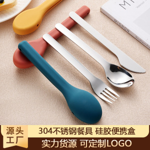 跨境304不锈钢便携餐具套装 硅胶套户外露营旅行刀叉勺筷子三件套