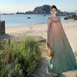 2025新款旗袍女高级感改良新中式连衣裙实拍 现货度假风渐变晕染