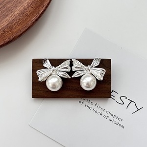 白銅銀針リボンパールイヤリング女性のニッチデザインイヤリングライト高級ハイエンドフラワーイヤリング卸売