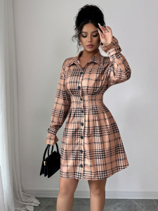クロスボーダーヨーロッパとアメリカのフレンチスタイルの長袖ボタンロングスカートドレス婦人服2025春夏アマゾン独立ステーション
