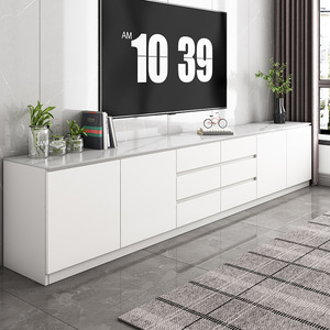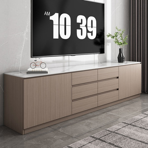 岩板电视柜高款落地实木客厅现代简约储物柜卧室电视机柜一体靠墙
