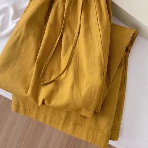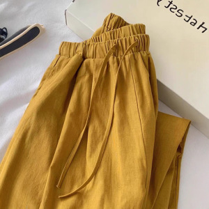 深圳南油轻奢高端货~姜黄色亚麻阔腿裤女夏季简约复古显瘦凉凉裤