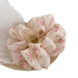 白色网纱珍珠蝴蝶结抓夹夏季新款气质高级感发夹发饰后脑勺盘发夹