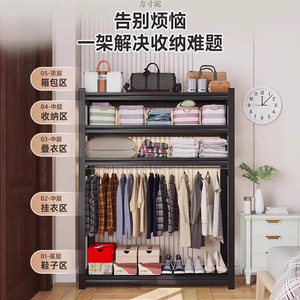家用置物架货架衣柜简易组装开放式卧室挂衣架家用阳台收纳铁架子