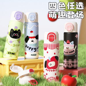 2025 新しい漫画高見え 316L ステンレス鋼ポータブルリング魔法瓶カップ子供の学校用特別な水カップ