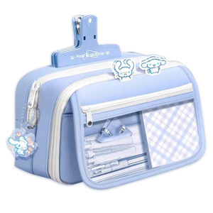 9層スカイブルーペンケース/定規+ステッカー+マグネットクリップのセット付き