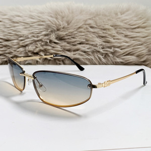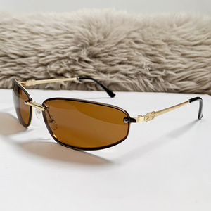 フレームレスオーバルサングラス Y2K ハイエンドヨーロッパとアメリカの凹面形状 2025 新しいサングラスレトロサングラス女性用