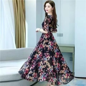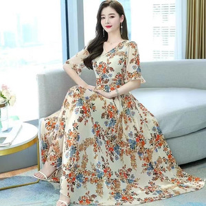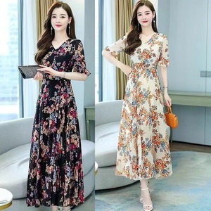 碎花冰丝连衣裙2025夏季新款爆款大码收腰高腰洋气时尚减龄裙子女