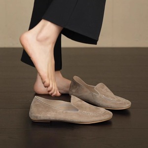 羊皮版~极简复古一脚蹬乐福鞋女平底舒适通勤单鞋百搭圆头小皮鞋