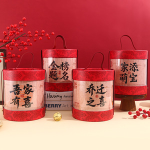 新品喜庆抱抱桶结婚回礼手提圆桶空盒高考题名回礼高级感伴手礼盒