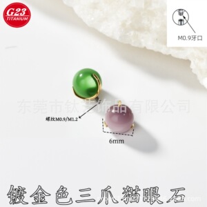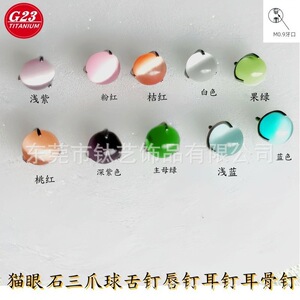 F136钛三爪圆球猫眼石耳钉唇钉G23钛合金舌钉骨钉饰品配件替换头
