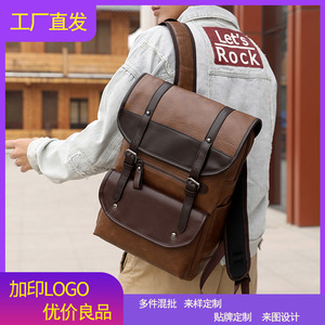 バックパックスポーツメンズ新製品メンズカジュアルトラベルファッションPUレザーバックパックメンズコントラストカラーシンプルバックパック