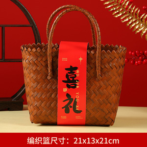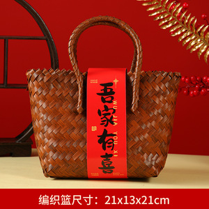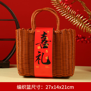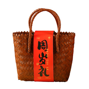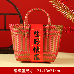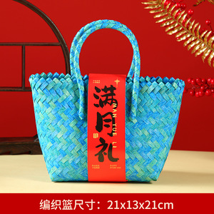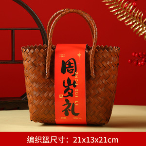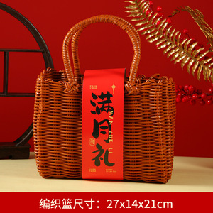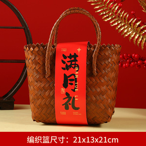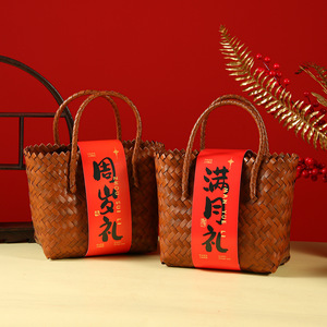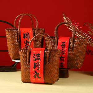 宝宝宴伴手礼空盒中古风编织篮十岁儿童生日伴手礼满月周岁手提篮