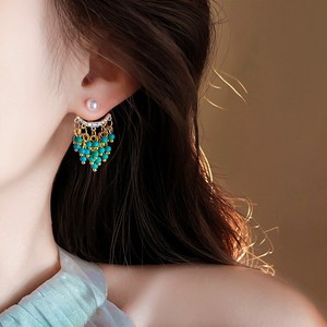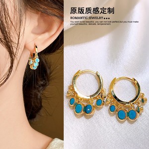 28#イヤーバックル - ゴールド - ブルー (本金メッキ)
