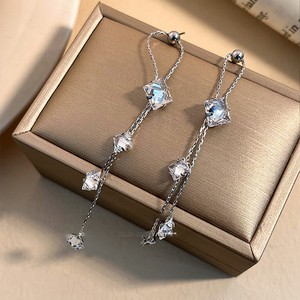 シルバー針韓国スタイルのシンプルなジルコンラブチェーンタッセルイヤリングライト高級ハイエンドイヤリングデザインニッチイヤリング