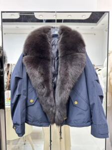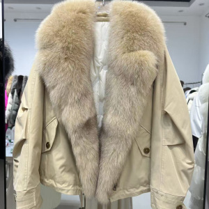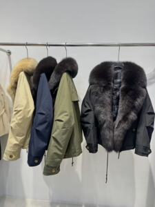 取り外し可能なリアルフォックスファー襟厚みのあるダウンライナースイートクールパーカーダウンジャケットレディースワークウェアカジュアルファーコート