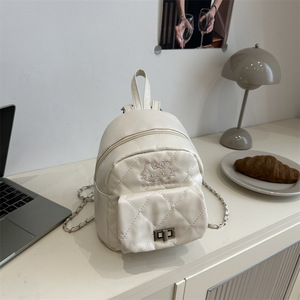 潮流绣线时尚复古迷你双肩包女2025新款菱格链条休闲多功能单肩包
