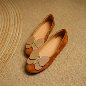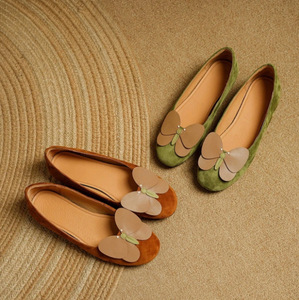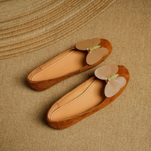 ニッチデザインバタフライラウンドトゥバレエシューズ女性用 2025 新しいカジュアルアウターウェアベルベットインナー高さ増加浅い口の靴