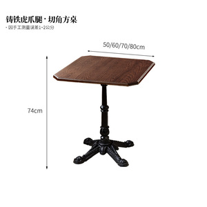 【北米産レッドオーク】角カットスクエアテーブル+鋳鉄タイガークローテーブル脚【在庫あり】