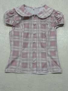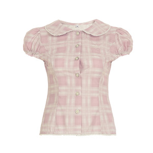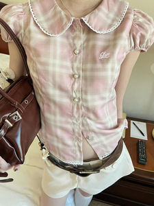 甜美泡泡袖格纹印花衬衫新款少女可爱风修身显瘦气质短袖上衣女