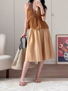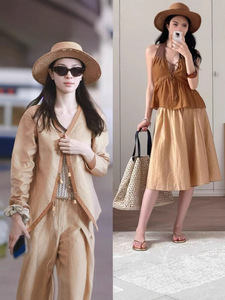 フレンチニッチ25初秋新作ゴールデンロックサドルレースアップVネック長袖トップ+Aライン万能スカートスーツ