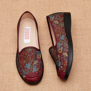 古い北京布靴、女性の春と秋の靴、中高年の母親のためのスリッポンシューズ、高齢者とおばあちゃんのための柔らかい底の靴、通気性のある靴