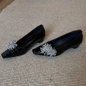 シープスキンバージョン〜新しい花火新しい女性用浅口靴、フランスの高級、優しい気質、スクエアトゥ、太いヒールの女性用靴