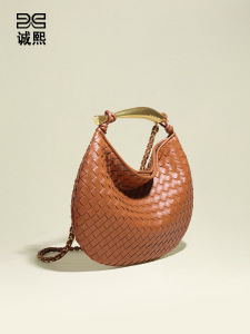広州工場直販バッグ イワシ手織りレトロファッション質感ワンショルダークロスボディ三日月団子バッグ
