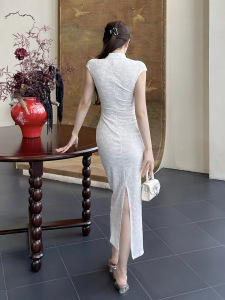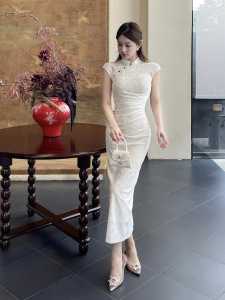 イリヤ新しい中国風のテクスチャードドレス女性の夏の中国風スリムフィットドレス XS25151GNG